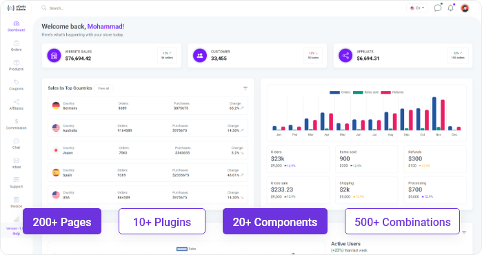aConic admin features over 200+ individual pages featuring various components, giving you the freedom of choosing & combining. All components can take variation in styling, that can easily be modified using Sass. The sky is the limit!