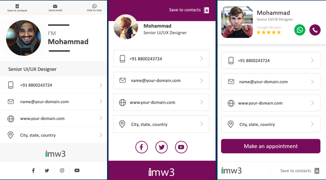 Forget about old fashioned printed visiting cards that generally goes to the dustbin. With our Digital Business Card, you can customize and share your contact information that has Actionable one clicks events like Call, Email, WhatsApp, Navigation, Website Link, Payment, Social Links, Maps, and more.