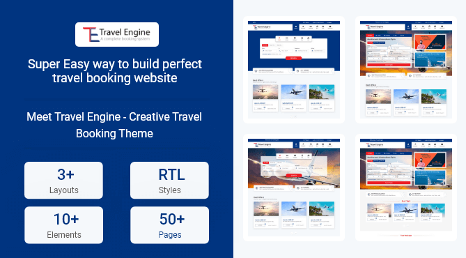 Travel Engine is a clean, modern, user-friendly, responsive, and highly customizable bootstrap Theme, built especially for your flight booking, hotel booking, holidays booking, bus booking, and cab booking system.